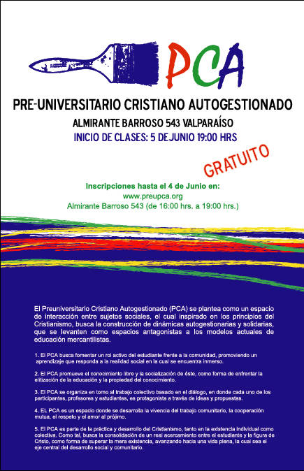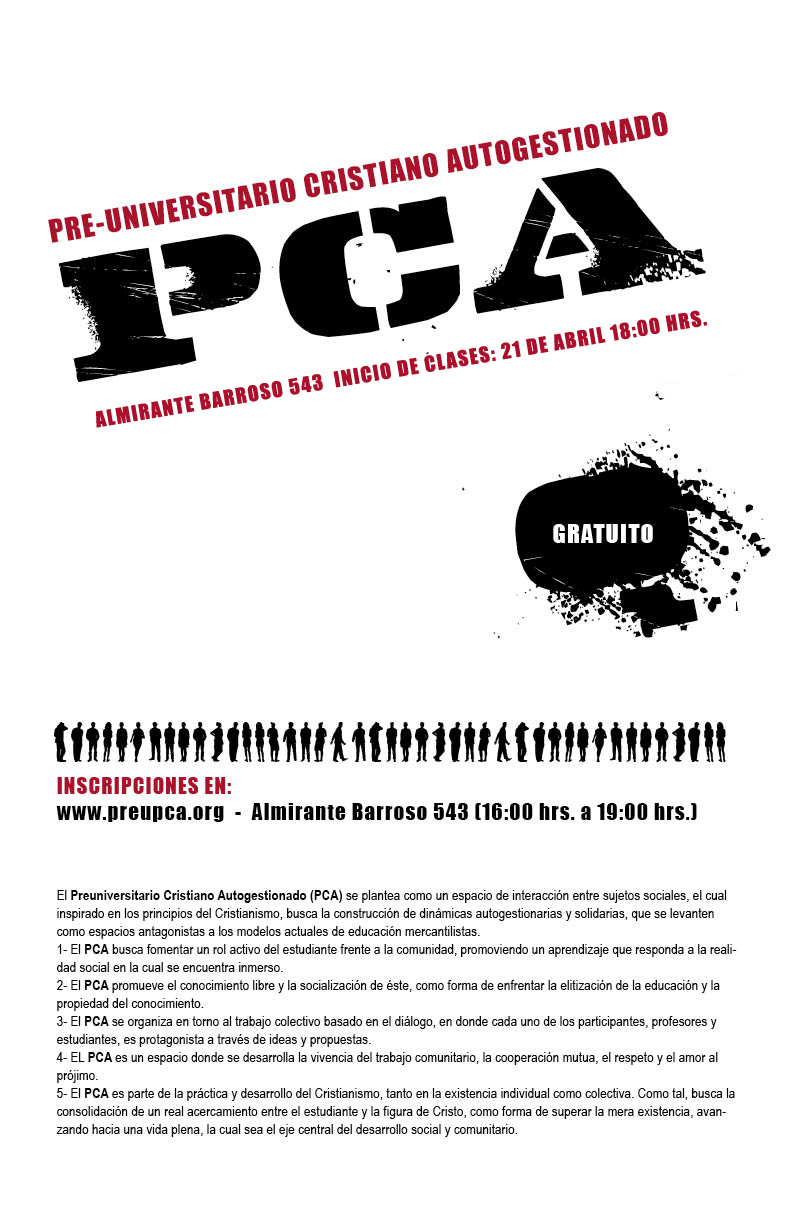 En un contexto de mercantilización de la educación chilena, el PCA se levantó como una alternativa solidaria para jóvenes que no podían acceder a un preuniversitario comercial. Sus primeras clases de matemáticas se dictaron en las mismas dependencias donde funcionaba el jardín infantil.