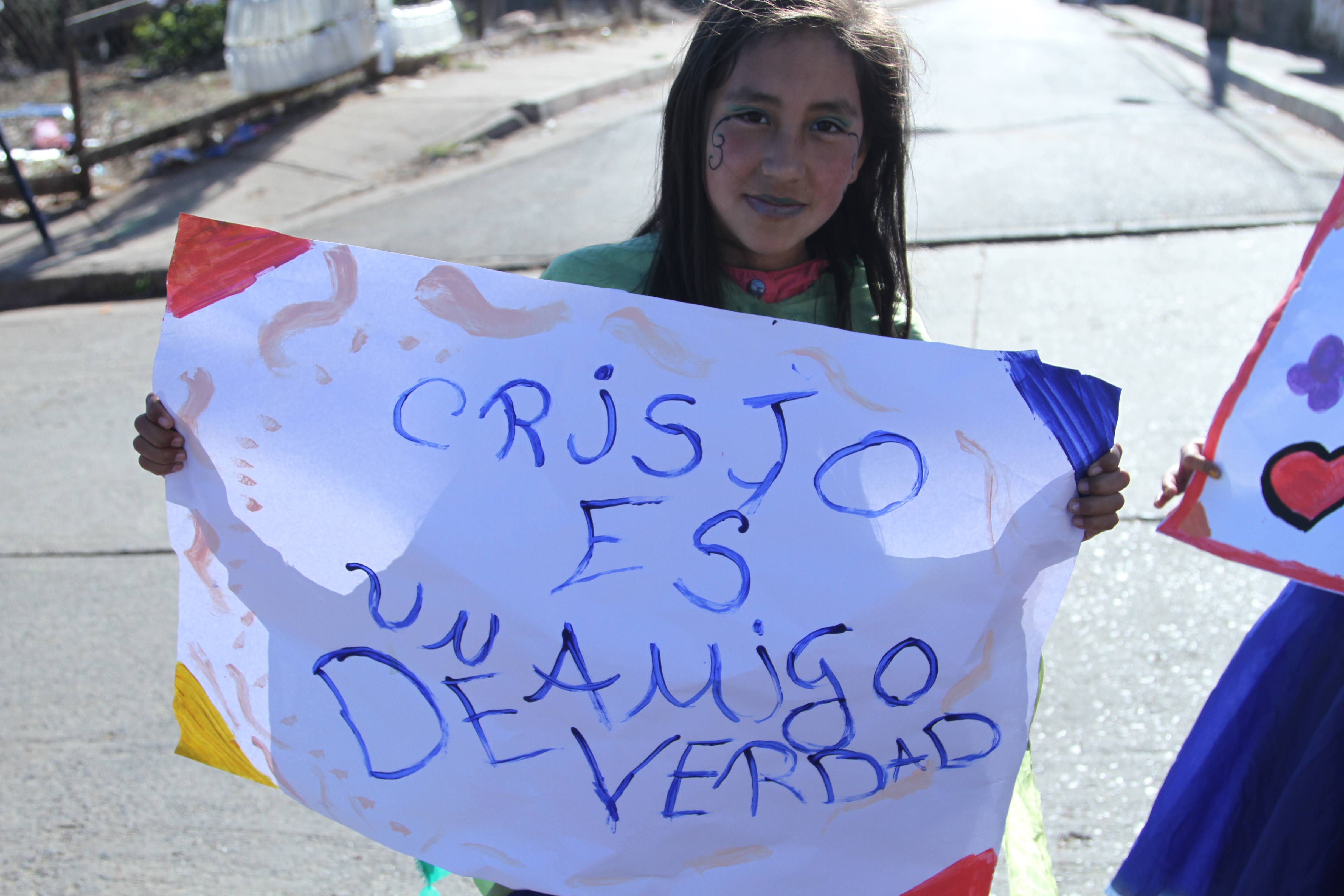 Cada sábado por la mañana, el barrio se llena de vida: vamos casa por casa con música, disfraces y sonrisas. Han venido astrónomos, científicos, músicos y malabaristas. Hemos pintado murales y construido jardineras con eco-ladrillos. También tenemos un espacio semanal de apoyo a tareas y una iglesia de niños donde aprendemos sobre Jesús jugando y cantando. De este caminar han nacido materiales, enseñanzas y hasta un disco musical grabado en la misma población.